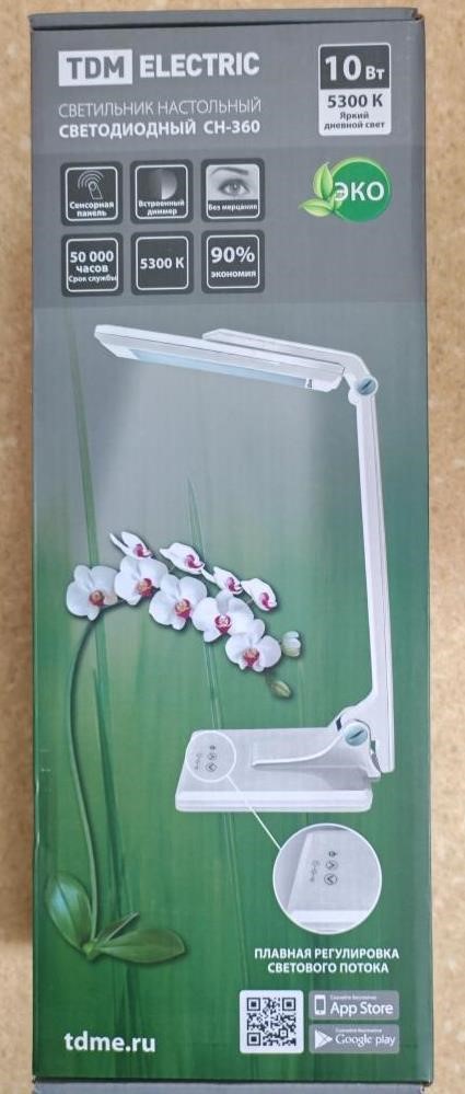 Светильник настольный светодиодный СН-360 торговой марки «TDM ELECTRIC» артикул SQ0337-0036, изготовитель «Вэньчжоу Рокгранд Трейд Компани, Лтд»/«WENZHOU ROCKGRAND TRADE CO., LTD» (Китай).