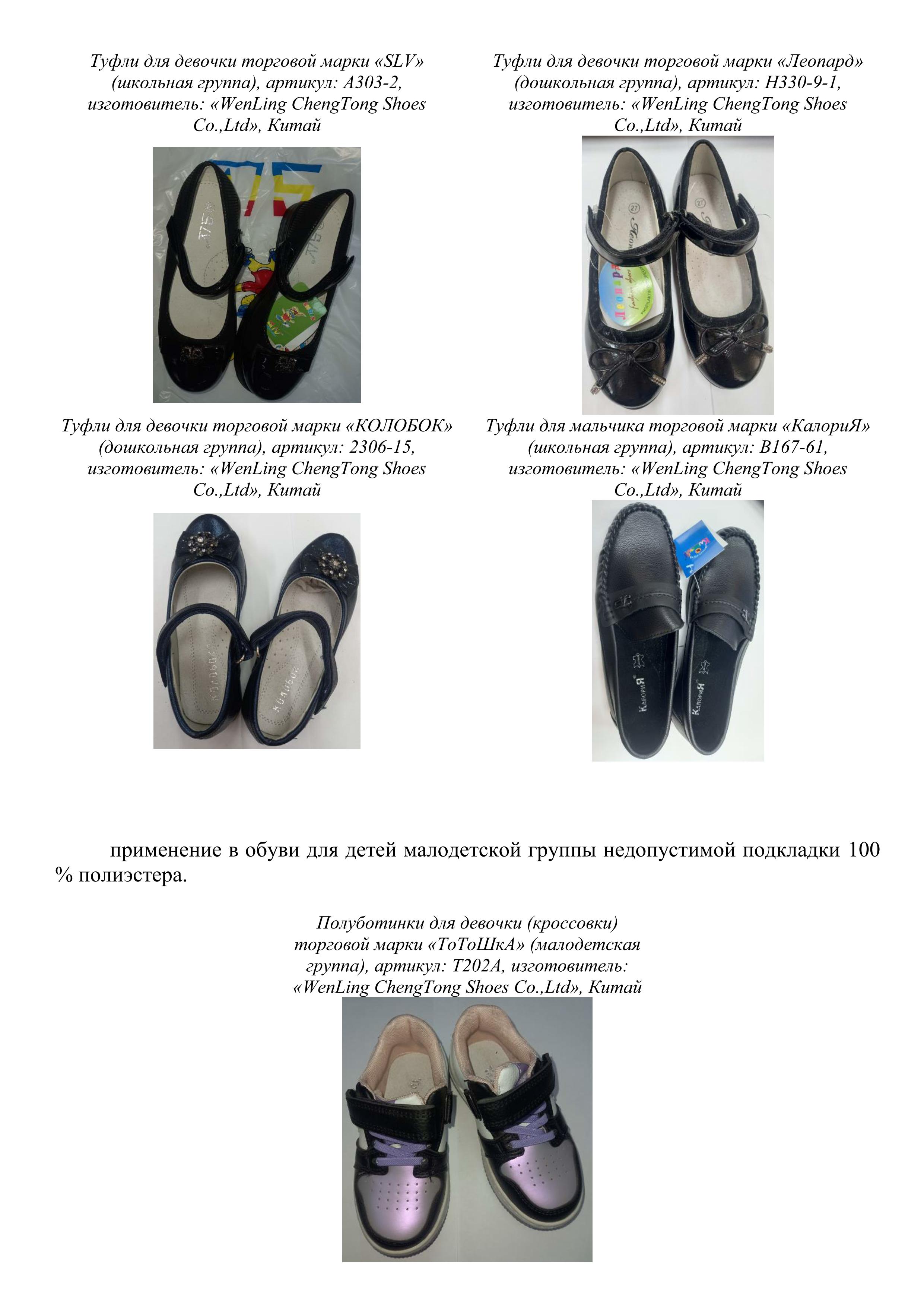 применение в закрытой обуви всех половозрастных групп недопустимой подкладки из искусственной или синтетической кожи.