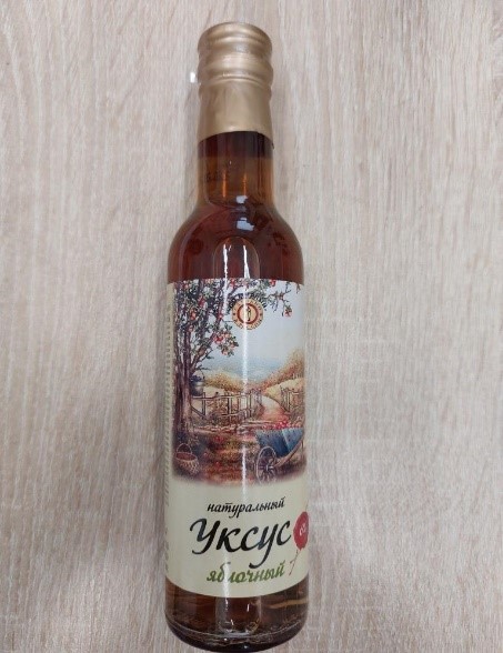 • уксус натуральный яблочный 6%, изготовитель ООО «СП Мирный» (Российская Федерация, г. Москва),